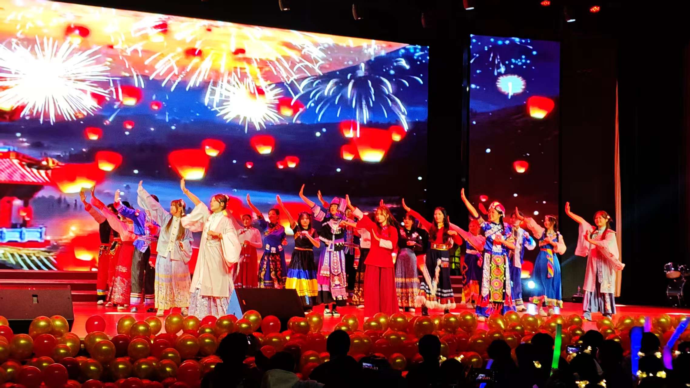 古典舞《苏堤夏谣》温婉柔美,拉丁舞《拉丁双韵》热情奔放,创意舞蹈《粉墨狂想曲》融合传统与现代元素,极具视觉冲击;融合舞蹈与朗诵的创新型节目《轻舞书笺,礼赞新华》,展现专业特色的小品《轨道时间局》,以生动演绎,赢得了阵阵喝彩;乐器演奏《晴天》旋律清新,朗诵《青春中国》则铿锵有力,抒发了学子们深厚的家国情怀与时代担当。