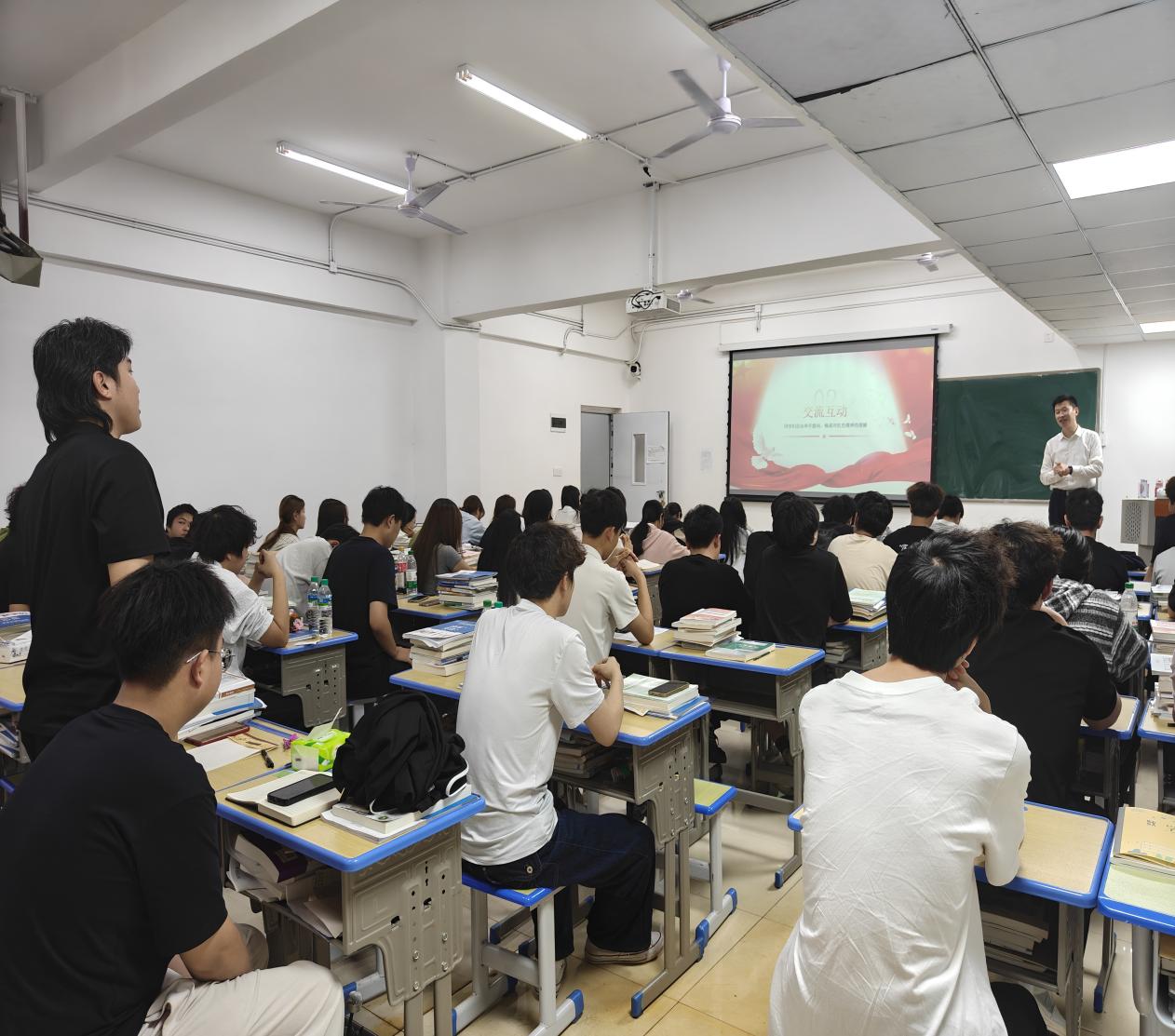在互动交流环节,同学们踊跃发言、积极提问,围绕红色文化传承、青年使命担当、专业发展与学习生活等话题与郭书记深入交流。郭书记耐心细致答疑解惑,现场氛围热烈融洽,思想碰撞不断激发青春共鸣。
